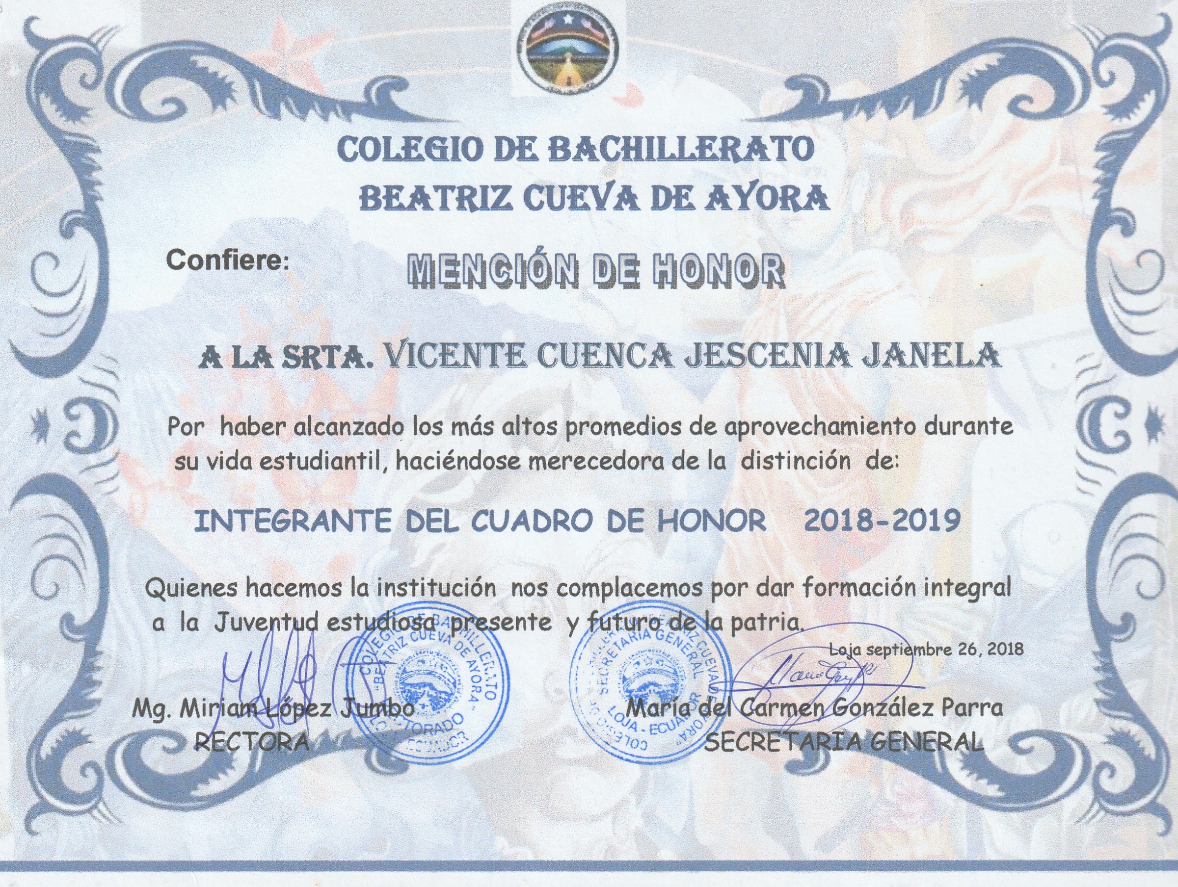 Integrante del Cuadro de Honor